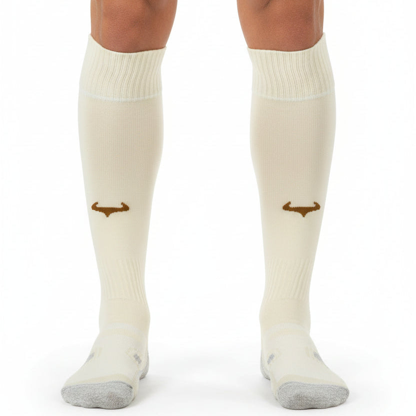 Die Academy Over-The-Calf Fußballsocken bestehen aus einer Mischung von 98 % Nylon und 2 % Elasthan, die für eine eng anliegende, stützende Passform und erhöhte Langlebigkeit sorgt.